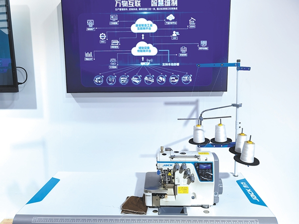 杰克缝纫机股份有限公司展出的智能缝纫机及服装智造工业互联网平台。本报记者 黄秋霞 摄